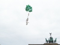 Frankfurt, 20.08.2014. Am Wochenende schweben über belebten Plätzen der Bankenmetropole Frankfurt die grünen Ballons von PEACE. Sie tragen jeweils einen Sack voll echter Scheine, der sich über den Passanten entleeren wird. „Der Geldregen symbolisiert, dass es auf dem Planeten mehr Privatvermögen gibt als je zuvor“, erläutert Joachim~ Ackva, Sprecher von PEACE. „Doch was machen wir daraus? Weiterhin stirbt alle fünf Sekunden unnötig ein Kind und wird Krieg gegen Mitmenschen und Umwelt geführt. Unser Vorschlag: Bündeln wir Bürger unsere Kraft und stärken die Millennium Development Goals mit einem neuen Weltkonto. Schon wenn wir freiwillig ein Tausendstel unseres Vermögens in einem Weltkonto zusammenlegen, ergibt das hundert Mal das reguläre Jahresbudget der Vereinten Nationen. Damit lassen sich globale Schandmale wie extreme Armut, Krieg und Umweltzerstörung glaubwürdig angehen.“