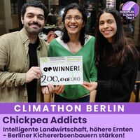 Das Team „Chickpea Addicts“ präsentierte eine innovative Agri-Tech-Plattform, die Landwirt:innen in Berlin-Brandenburg beim nachhaltigen Anbau von Kichererbsen unterstützt. Angesichts zunehmender Dürren bietet die robuste Pflanze eine klimafreundliche Alternative, die wenig Wasser benötigt und sich ideal mit Weizen kombinieren lässt. Die Plattform verbindet Landwirte und Landwirtinnen mit Forschenden, Märkten und Echtzeit-Daten zu Wetter, Erträgen und Finanzen. Ziel ist es, den Zugang zu relevanten Informationen zu erleichtern, nachhaltige Anbaumethoden zu fördern und die Wirtschaftlichkeit des Kichererbsenanbaus zu steigern – ein wichtiger Schritt für eine widerstandsfähigere, regionale Landwirtschaft.