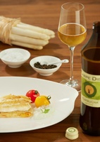 Rezept: Steinbutt auf gebratenem Spargel mit Knuspertarte
