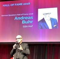 Düsseldorf/Berlin, 09.09.2018- Andreas Buhr (CSP), bekannter Vortragsredner, Autor und Unternehmer, ist in die Hall of Fame der German Speakers Association GSA berufen worden. Die Auszeichnung wurde am 8.9.2018 im Rahmen des Gala-Abends der diesjährigen GSA-Convention in Berlin an den Top-Speaker aus Düsseldorf vergeben.