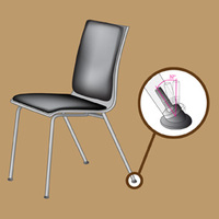 Der QuickClick 32° bietet Mehrwert über jegliche Standard-Lösung hinaus: Neben seinem extremen Neigungsgrad ermöglicht er sanftes, nahezu geräuschloses Gleiten, macht Stühle dank wendbarer Duo-Gleiteinsätze flexibel einsetzbar auf jeder Art von Bodenbelag und ist extrem wartungsfreundlich – ein wichtiger Aspekt speziell im Objektbereich. Den neuen QuickClick 32° gibt es wahlweise als Lamellen-Variante oder, in der Premium-Ausführung für höchste Ansprüche, als geräusch- und vibrationsdämpfende Silencer-Variante. Die Montage erfolgt schnell und einfach: Ein schwingungs- und lärmdämpfender Absorber wird in das Stuhlbeinrohr eingesteckt und mit einer passenden Gelenkbasis komplettiert. Das Eindrücken eines wendbaren Duo-Gleiteinsatzes in die Gelenkbasis ermöglicht die Verwendung von QuickClick 32° auf jeder Art von Bodenbelag. Denn eine Seite des Duo-Gleiteinsatzes besteht aus hochabriebfestem Naturfilz für bodenschonendes Gleiten auf allen glatten Belägen, die andere Seite aus Spezialkunststoff mit besten Gleiteigenschaften auf allen weichen Belägen – der Kunde hat die Wahl. Bei einem Wechsel des Bodenbelags, z. B. von Teppich auf Parkett, wird der Duo-Einsatz einfach ausgeklickt, gewendet und wieder eingeklickt, fertig. Und auch bei Verschleiß können Einsätze in Sekundenschnelle ausgetauscht werden – einfach mit einem „Klick“.