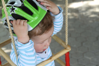 Im Straßenverkehr sind Fahrradhelme ein wichtiger Schutz, auf Spielplätzen jedoch im Zweifel riskant. „Der Helm kann sich an den Griffen der Rutsche oder in den Seilen eines Klettergerüsts verfangen. Durch den Verschlussgurt sind dann schwere Verletzungen möglich, im schlimmsten Fall sogar der Tod durch Strangulieren“, sagt Thomas Paufler, Unfallexperte bei der R+V Versicherung. Hinzu kommt: An engen Einstiegen zu Rutschen und Klettergerüsten können die Kinder mit dem Helm so heftig anstoßen, dass sie sich am Genick schwer verletzen. „Eltern glauben oftmals, dass Fahrradhelme auch in anderen Situationen schützen. Auf einem Spielplatz kann das allerdings tragisch enden“, so R+V-Experte Paufler. Auch lange Ketten, Schals oder Schlüsselbänder sollten Kinder vor dem Spiel ablegen, damit sie sich nicht in den Geräten verheddern.