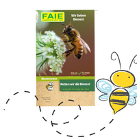 Geplant ist, dass jedes FAIE Paket ein kleines Samensäckchen enthalten wird. So können über 100.000 kleine Bienen Blühstreifen in ganz Österreich, Deutschland, Schweiz und sogar Polen erstrahlen. Die Samenmischungen enthalten spezielle Blühpflanzen, die besonders attraktiv für Bienen sind. FAIE unterstützt somit den Schutz und Nutzen der Bienen. Die wohl fleißigsten und bedeutsamsten Fluginsekten in der heutigen Zeit! Schließlich sind mehr als Dreiviertel der Nahrungsmittelpflanzen von der Bestäubung der Bienen abhängig. Dank ihrer Leistung genießen wir nicht nur leckeren Honig, sondern auch zahlreiche Früchte und Gemüsearten. Umso mehr freut sich FAIE die Bienenvölker mit vielen kleinen Bienenwiesen zu unterstützen.