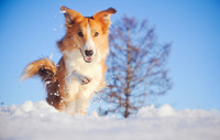 Im Schnee zu toben, macht den meisten Hunden viel Spaß. Wenn der Hund danach immer Eisklumpen zwischen den Pfoten hat, empfiehlt es sich, den Hund vor dem Spaziergang zwischen den Zehen mit einer Fettcreme einzucremen. Dann bleibt nichts mehr hängen.