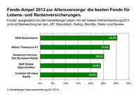 Heidelberg (03.02.2014) – Welche Fonds eignen sich am besten für die Altersvorsorge? Dieser Frage stellt sich die Heidelberger Leben Quartal für Quartal. Jetzt hat der Spezialist für fondsgebundene Altersvorsorge-Lösungen die Jahresbilanz für 2013 vorgelegt. Dafür wurden im Jahresverlauf insgesamt 50 Investmentfonds bewertet. Entscheidend für das Ergebnis sind fünf Kriterien, die fünf „R“: Reputation, Rating, Rendite, Risiko und Review.