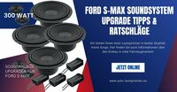 Der Ford S-Max wird seit 2006 gebaut und ist in zwei Versionen am Markt: Ford S-Max I bis 2014 und Ford S-Max II ab 2015. Das Standard-Soundsystem des Ford S-Max ist sehr einfach aufgebaut und enthält 2 Hochtöner im Armaturenbrett. Tieftöner in beiden vorderen und hinteren Türen mit zusätzlichen Hochtönern in den hinteren Türverkleidungen. Die Baugröße sind 165mm Tieftöner mit fahrzeugspezifischen Halterungen an den Türen.