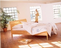 Auch das Bett und sein Inhalt als Herzstück des Schlafraumes sollten nur aus natürlichen Mate-rialien wie Holz, Naturlatex, Schafschurwolle und Baumwollstoffe etc. bestehen. Außerdem sollte sich die Liegefläche des Bettes mindestens 35 cm über dem Boden befinden, da die Staubbelastung bis zu 20 cm über dem Boden am größten ist (90 Prozent). Die ideale Größe des Bettes beträgt pro Person 90 bis 100 cm in der Breite und in der Länge rund 20 cm mehr als die Körperlänge des Schläfers. Das Bett sollte vorzugsweise von Norden (Kopfteil) nach Süden (Fußteil) positioniert sein aufgrund des Einflusses des Erdmagnetfeldes.