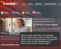 Berlin/Alpnachstad – Das in der Schweiz beheimatete Unternehmen ZARO das biotechnologische Produkte entwickelt, produziert und über Handelspartner vertreibt, wurde am 26.11.2013 Opfer von Frontal21 und zielsicher von den verantwortlichen Redakteuren vernichtet. Die Vorgeschichte ist einfach erzählt, das Unternehmen ( http://www.zarobiotec.com ) vertreibt seit 2003 diverse Wassertransformer die durch chemiefreie Reinigung und Wasserwandlung einen großen Kundenkreis in Europa gefunden haben. Die Produkte wurden seit 2011 auch sehr erfolgreich im Teleshopping bei HSE24 verkauft. Die verantwortlichen Handelspartner, lieferten einzigartige Gutachten und Testate um die Reinigungskraft, die Wasserwandlung und die physikalischen Wasserwirkungen aufzuzeigen, darunter Namen wie Fresenius, Fraunhofer, Pfiff-Institut, TÜV Süd und Hagalis, unabhängige Prüfberichte die eindeutig die Wechselwirkungen der Schwingungen auf das Wasser bescheinigten. Ein unwissender TV-User, der Mann hatte nie ein Produkt getestet, erlaubte sich bei Frontal21 die Leistungen der Produkte zu bezweifeln, damit begann eine Hexenjagd der Superlative, in dessen Verlauf, alles unternommen wurde um die umweltschonenden Reinigungsteile öffentlich zu vernichten, eine beispiellose Kampagne wurde vom Zaun gebrochen um Produkt und Unternehmen vom Markt verschwinden zu lassen.