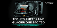 PHANTEKS hat eine neue Allzweckwaffe Sachen Kühlung parat: Die T30-120 sind 120 mm große High-End-Lüfter, die durch ihre innovative Bauweise und hohe Anpassungsfähigkeit für eine erstaunliche Vielzahl an Kühl-Szenarien bestens gewappnet sind. Die Tiefe von 30 mm ermöglicht vergrößerte Lüfterblätter, was zu einem deutlich besseren Airflow bei optimierten Leistungs-Lautstärke-Verhältnis führt. Die drei Betriebsmodi ermöglichen, die Lüfter an unterschiedlichste Systeme und Szenarien anpassen. Damit eignen sie sich gleichermaßen für leistungsorientierte System-Builder und Overclocker, wie für Gaming- oder Silent-Enthusiasten. Bei der neuen Version des PHANTEKS Glacier One 240 T30 können die Lüfter ihre Stärken voll ausspielen.