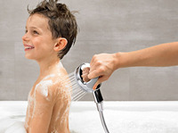 Eltern mit kleinen Kindern kennen es: Wer hat nicht schon beim Versuch, den mehr oder weniger widerspenstigen Nachwuchs zu säubern, mit dem Duschkopf in der Hand das Bad unter Wasser gesetzt? Dank der neuen Handbrause HANSAVIVA FLEX ist Duschen so einfach wie nie – ganz gleich, ob man sich selbst oder jemand anderen abbraust. Ihr Griff ist um 360 Grad frei drehbar und ermöglicht eine besonders unkomplizierte Handhabung.