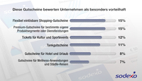 (NL/8924766422) Eine FOCUS-Studie im Auftrag von Sodexo zeigt, dass Unternehmen gerne flexibel einlösbare Gutscheine verschenken. Gerade für kleine und mittelständische Unternehmen sind Gutscheine ein wichtiges Instrument der Kundenbindung und Mitarbeitermotivation. Da die Beschenkten selbst auswählen können, was sie wünschen, entfällt das Risiko, etwas Falsches zu schenken.
