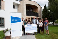 Das Fest war aber nicht nur für die Mieter im Hallschlag ein Grund zur Freude. Auch die Lebenshilfe Stuttgart mit ihren Stuttgarter Wohnstätten profitiert davon, denn sie erhielt am Montag, 19.08.2019, eine Spende in Höhe von 2.000 Euro. Der Vorstandsvorsitzende der GWG, Andreas Engelhardt, und die für die Siedlung im Hallschlag zuständige Kundenbetreuerin Verena Lorenz überreichten den Spendenscheck persönlich an Andreas Galts (Vorstand Lebenshilfe Stuttgart), Holger Brambach (Fachbereichsleitung Stuttgarter Wohnstätten), Ricarda Ditschun (Standortleitung Wohnanlage am Probstsee) und weitere Mitarbeiter sowie Bewohner der Stuttgarter Wohnstätten. Andreas Engelhardt erklärt: „Es ist Tradition, dass wir den Erlös der Mieterfeste im Hallschlag jedes Jahr für einen guten Zweck hier in der Region spenden. Wir als großes Wohnungsunternehmen bieten vielen Menschen ein Zuhause. Manche brauchen jedoch besondere Unterstützung in ihrem Alltag. Deshalb möchten wir Organisationen unterstützen, die hilfsbedürftigen Menschen ein Zuhause bieten.“