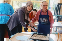 Die Bewohner*innen der Gemeinnützigen Werk- und Wohnstätten GmbH (GWW) haben Frauen mit Flucht- und Migrationsgeschichte aus dem Sprachcafe im Treff am See zum gemeinsamen Backen in ihr Wohnheim in der Brunnenstraße eingeladen: Eine Aktion im Rahmen der Partnerschaft für Demokratie in Trägerschaft der Stadt Böblingen, die vom Programm „Demokratie leben!“ des Bundesministeriums für Familie, Senioren, Frauen und Jugend gefördert wird, und in Kooperation mit Mihriban Bagci von der städtischen Fachstelle für Bürgerschaftliches Engagement. Dabei lernen sich die Teilnehmenden kennen und schätzen, bauen Vorurteile ab, und es entstehen internationale Köstlichkeiten.