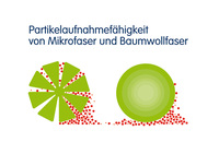Das wiederum liegt an der extremen Feinheit der Mikrofaser, von der weniger als 0,2 Gramm für zehn Kilometer Fadenlänge reichen. Zum Vergleich: Die Oberfläche eines Mikrofasertuchs von 45 x 45 Zentimeter Kantenlänge entspricht der eines Baumwolltuchs in nahezu Fußballfeldgröße.