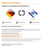 Eine Anzeige? Ein Flyer? Eine Broschüre? Eine Webseite? Werben Sie jetzt hebräisch mit dem Übersetzungsservice der KENSINGFIELD Werbeagentur. Einfach gewünschte Wörterzahl eingeben und Sie erhalten Ihren Werbetext in professionellem Werbe-Hebräisch.