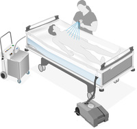Das ortsunabhängige Patientenduschsystem für Pflegebedürftige, lässt das Duschen, ohne das Bett zu verlassen, zu.