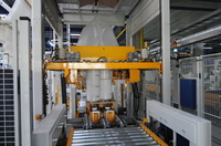 Für die kundenspezifische Verpackung und Palettierung der fertigen Schmalrollen löst der Mitarbeiter am Schneidsystem einen Transportauftrag aus. Über den OPC Router benachrichtigt das System dann einen Transportwagen, der die Rolle zur zentralen Verpackungsstation des Unternehmens fährt. Dort werden alle weiteren Informationen zum automatischen Verpacken, Palettieren und Einschweißen selbständig an die Station übermittelt. Die hierbei ebenfalls eingebundene Waage sendet das Gewicht an SAP, das sogleich die Verladezettel für Transport und Zoll erstellt.