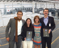 Nähere Angaben zum Foto: Edelmann Mexiko ist von Procter & Gamble als „Supplier of the Year“ sowie mit dem „Supplier Quality“-Award ausgezeichnet worden. Ivonne Gonzalez Chagoyan und Alejandro Galvez (3. und 4. von links) nahmen für Edelmann Mexiko die Ehrung von Hector Muñoz und Fabiola Gonzalez (1. und 2. von links) entgegen.