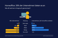 Insgesamt wird Homeoffice von allen Unternehmen genauso häufig angeboten (39%) wie es von den Mitarbeitern ungenutzt bleibt (39%). Dies steht im Gegensatz zur Dringlichkeit, die Arbeitsminister Hubertus Heil (SPD) dem Homeoffice als gesetzlichem Anspruch beimisst. Während nur 30% der mittelständischen Unternehmen Homeoffice anbieten, setzen vorwiegend Firmen über 50 Mitarbeitern auf das flexible Arbeitszeitmodell (49%). Vor allem in der Datenverarbeitung wird es sehr stark bis stark genutzt (48%). „Homeoffice gilt als die Allzwecklösung der digitalen Arbeitswelt. Unsere Studie zeigt, dass dieses Arbeitszeitmodell für den Mittelstand wenig Relevanz hat. Während größere Firmen von Homeoffice profitieren können, ist mittelständischen Unternehmen mit solchen Einzelmaßnahmen nicht immer automatisch geholfen“, erklärt Andreas Bolder, Director Human Resources bei der Randstad Gruppe Deutschland.