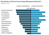 Nur acht Prozent der Befragten sind „sehr zufrieden“ mit ihrem Reporting. „Einer der Hauptkritikpunkte ist die fehlende Entscheidungsrelevanz der Informationen“, so Studienleiter Dr. Johannes Isensee. 75 Prozent der Befragten beklagen, dass das Reporting überwiegend vergangenheitsbezogene Daten liefert und die Abweichungen lediglich im Rückblick aufzeigen. Isensee: „Damit nimmt das Reporting maximal eine unterstützende Rolle in der Entscheidungsfindung ein. Ziel sollte stattdessen der Blick nach vorn sein.“