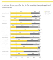 Fast 300 Führungskräfte aus Deutschland, Österreich und der Schweiz wurden in dieser Studie zum Thema Service befragt. 60 Prozent von ihnen stimmten der Aussage „Deutschland ist eine Servicewüste“ zu. Als Grund dafür gaben sie zum Beispiel eine „unfreundliche und barsche Kommunikation“ an. Allerdings ist die Erwartungshaltung von Branche zu Branche unterschiedlich. Elementar ist ein guter Service in Hotellerie und Gastronomie. 97 Prozent der Befragten gaben an, dass ihnen der Service hier sehr wichtig sei – gefolgt von der Tourismusbranche mit 93 Prozent, Banken mit 73 Prozent und dem Einzelhandel mit 72 Prozent. Weniger entscheidend ist Service in der Energiebranche und in der Industrie. Nur 19 beziehungsweise 17 Prozent der Befragten ist hier ein guter Service sehr wichtig. Im Mittelfeld rangieren die Branchen Automobil, Gesundheit, Versicherungen, Kommunikation sowie Transport und Verkehr.