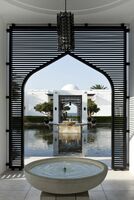 Das Design des Resorts kombiniert zeitgenössischen asiatischen Stil mit typisch omanischen Elementen. Die 158 Zimmer und Suiten wurden von Jean-Michel Gathy, Stararchitekt bei Denniston Architects, entworfen und offenbaren einen Blick auf den Golf von Oman, die Berge und die symmetrischen Zen-Gärten des Hotels. Der Name Jean-Michel Gathy ist bekannt für seinen weitreichenden Einfluss auf die Gestaltung der Luxushotels des 21. Jahrhunderts. Essentielle Komponenten bei der Umsetzung von Luxus sind für ihn: Freiheit, Privatsphäre und Raum. Gathy versteht es wie kein anderer Architekt eine Vision zu entwickeln und diese dann unter Berücksichtigung aller Vorschriften umzusetzen -so auch beim Bau des The Chedi Muscat. Das Ergebnis ist eine Symbiose von stilvoller Eleganz mit omanischer Kunst des mittleren Ostens.