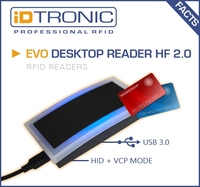 Neueste Industrie 4.0 und IoT Applikationen erfordern modernde Anbindungsmöglichkeiten. Fortschrittliche Technologien benötigen valide und funktionierende Systeme und Kommunikationsmöglichkeiten. Der EVO Desktop Reader HF 2.0 von iDTRONIC ist ein RFID Reader & Writer und verknüpft Komponenten neuester Technik und bewährter Standards.