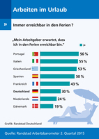 56 Prozent der Befragten in Portugal geben an, dass von ihnen seitens des Arbeitgebers erwartet wird, in den Ferien erreichbar zu sein. In Italien sind es 55, in Griechenland 53 und in Spanien immerhin noch 50 Prozent. Besser haben es da die Beschäftigten in Nordeuropa. Die Mehrheit der Arbeitnehmer kann während der schönsten Tage des Jahres ihren Job einfach Job sein lassen