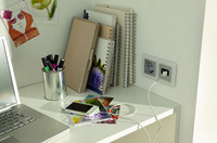 Der Fachhandel hält noch weitere Varianten zur Aufrüstung von normalen Steckdosen mit USB-Lösungen für die Unterputzdose bereit. Dazu zählt der USB-Netzteil-Einsatz mit zwei USB-Steckdosen. Die dazu erhältliche Abdeckung sieht ähnlich dezent aus wie bei Telefonsteckdosen und passt in alle gängigen 58er Unterputz-Gerätedosen. Auf diese Weise können zum Beispiel zwei Smartphones gleichzeitig geladen werden. Der Strom reicht für zwei Geräte mit einem Strombedarf von 700 mA. Hartmut Zander von ELEKTRO+ ergänzt: „Für einen Tablet-Rechner würde das jedoch nicht genügen. Daher gibt es auch die Ausführung mit einem einzigen USB-Anschluss für 1400 mA.“ Noch mehr Komfort bieten Abdeckungen die mit einer integrierten Halterung gleichzeitig zur Ablage für mobile Geräte werden. Durch eine Antirutsch-Beschichtung sind Handy oder Navigationsgeräte dort während des Ladevorgangs sicher aufgehoben.