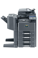 Dabei erkennt das neue digitale Farb-Multifunktionssystem UTAX 2500ci beim Kopieren automatisch, ob eine Farb- oder s/w-Seite auf dem Vorlagenglas liegt und reagiert entsprechend. Das spart nicht nur Zeit beim Sortieren, sondern auch Kosten, weil unnötige Farbdrucke vermieden werden. Praktisch ist auch der Job-Separator, der Kopien und Drucke in unterschiedliche Ausgabefächer ablegt. Durch eine zusätzliche Kassette erhöht sich zudem die Papierkapazität von maximal 2.100 Blatt beim Vorgängermodell auf jetzt 4.100 Blatt. Auch der optionale Finisher wurde verbessert: Statt einem Hängemodell steht jetzt ein Finisher zur Verfügung, der bis zu 1.000 Blatt DIN A4 fasst und maximal 50 Blatt heftet. Ein verteilfertig verarbeitetes Handout für ein Meeting erstellt das System quasi im Alleingang. Mit der ersten s/w-Kopie nach 6,2 Sekunden ist das UTAX DIN-A3-Farb-MFP 2500ci sogar noch schneller als sein beliebter Vorgänger.