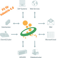 Die Vernetzung für die Industrie 4.0 umfasst auch übergeordnete Systeme: SCADA-, MES- oder ERP-Lösungen gehören in jedes Gesamtkonzept. Der OPC Router stellt zu diesen Systemen sichere, bidirektionale Verbindungen her. An der grafischen, einfach konfigurierbaren Benutzeroberfläche können auch Mitarbeiter ohne Programmiererfahrung die gewünschten Kommunikationsprozesse einrichten und überwachen. Hier wird bestimmt, welche Steuerungssignale an ERP-Systeme wie SAP weitergegeben werden und welche Daten diese Systeme an Steuerungen oder andere Geräte schicken sollen.