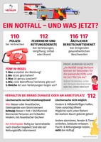 -Wenn Sie das Feuer nicht selbst löschen können: Informieren Sie schnellstmöglich den Notruf 112 sowie alle anderen Menschen, die sich im Gebäude befinden.