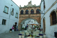 Vom Dorfplatz ausgehend, der von der Kolonne vom Heiligen Oronzo (Sant“Oronzo) dominiert ist, läuft man durch enge Gassen aus denen man Bauernhäuser und als Touristenunterkunft sorgfältig restaurierte Adelspaläste bewundern kann. Ein Muss ist die Kathedrale, mit ihren Kunstschätzen und ihrer Rosette.