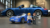 Das neue Spitzenmodell kommt mit geschärftem Heckdesign, innovativem Lichtkonzept und dem legendären Targa-Dach. Der PLAYMOBIL-Porsche ist seinem Vorbild im Maßstab 1:20 originalgetreu nachempfunden, Konstruktionspläne des Originals dienten als Vorlage. Das neue Spielset enthält außerdem einen komplett eingerichteten Verkaufsraum. Doch ganz egal, wie das Verkaufsgespräch im Porsche Zentrum von PLAYMOBIL ausgeht: Eine Probefahrt im sportlich-schicken Targa in Saphirblaumetallic sollten sich sowohl kleine als auch große Sportwagen-Fans auf keinen Fall entgehen lassen!