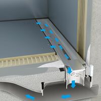 Der wichtigste Unterschied: Die Gutjahr-Estrichabziehlehre ist direkt am Grundkörper montiert und wird auch nach dem Abziehen des Estrichs nicht entfernt. „Deshalb muss auch die Dichtmanschette nicht zusammengefaltet werden. Stattdessen liegt sie, wie bisher bei unseren Duschrinnen, sofort plan. Das vereinfacht die Einbettung des Vlieses in die Abdichtung enorm“, sagt Miseer-Baum. Weil die Estrichabziehlehre an Ort und Stelle bleibt, bildet sich zudem keine Vertiefung, die nachgearbeitet werden muss. „Das macht die Ausführung der Duschrinne einfacher und schneller.“ Die Estrichabziehkante kann auf drei Seiten (für den Einbau an der Wand) oder umlaufend (für den Einbau in der Mitte) eingesetzt werden.