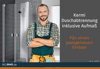 Der Kauf einer von Kermi speziell für Sie angefertigten Duschabtrennung ist eine sichere Sache! Durch das vorab vorgenommene Aufmessen wird sichergestellt, dass Ihre neue Duschabtrennung auch wirklich passt. Und sollte sie im äußerst seltenen Fall nicht passen, wird Kermi sich um alles Weitere kümmern – Sie müssen sich weder um den Mehraufwand kümmern noch dafür zahlen.