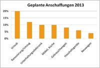 Knapp die Hälfte (48%) der Befragten plant für 2013 größere Anschaffungen bzw. Ausgaben. Auf Platz 1 steht eine Urlaubsreise (20%), dicht gefolgt von Renovierung bzw. Umzug (12%) und Unterhaltungselektronik (10%).
