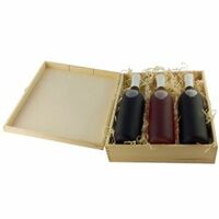 Die Holzkiste, mit Kordel zum Tragen, ist eine praktische und stilvolle Art, Weinflaschen zu transportieren oder als Geschenk zu präsentieren. Eine umweltfreundliche und hochwertige Geschenkverpackung, die beim Verschenken Freude bereitet.