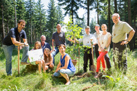 Bild 5: Die Teilnehmer der Pflanzaktion informieren sich über Struktur und Bedeutung des Waldes