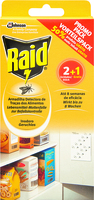 Männliche Lebensmittelmotten werden durch die Pheromone in der Raid Lebensmittel-Mottenfalle angelockt und bleiben auf der Leimfläche kleben. Dadurch eignet sich die insektizidfreie und geruchlose Mottenfalle ideal zur Früherkennung eines Mottenbefalls in Küchenschränken und Vorratsräumen. Sie wirkt bis zu acht Wochen. Inhalt: 2 Stück. Preis: 3,99 Euro (UVP).
