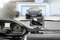 Man sieht, was vor und hinter dem Auto passiert: Die dezente Mini-Kamera in der Nummernschild-Halterung behält den Überblick und überträgt das Bild an den Monitor in dem Cockpit.