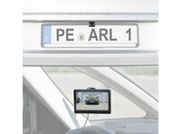 Bequemer Einbau ohne umständlich Kabel nach vorne zu verlegen: Die Kamera einfach am Nummernschild befestigen und sie an der Spannungsversorgung des Rückfahrscheinwerfers anschließen. Der Monitor lässt sich am Armaturenbrett oder an der Windschutzscheibe befestigen.