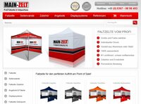 Das Unternehmen Main-Zelt ist auf hochwertige Faltzelte, Faltpavillons und Werbesysteme wie Beachflags, Fahnen und Werbebanner spezialisiert. Seit 2009 bietet der Fachhändler Main-Zelt für Privatleute, öffentliche Einrichtungen und Gewerbebetriebe aus Industrie und Wirtschaft eine vielfältige Auswahl an Artikeln an. Main-Zelt liefert hochwertige Produkte zu günstigen Preisen. Ob Faltpavillons für eine Verkaufsausstellung, Werbebanner und Displays für ein Produktpräsentation, oder Faltpavillons und Festzelte für einen privaten Anlass, für jedes Event gibt es eine professionelle Lösung von Main-Zelt.