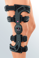 Die Knieorthese M.4 X-lock von medi unterstützt die postoperative Nachbehandlung von stabilen Meniskusnähten, Rissen der Patella- und Quadrizepssehne sowie nach Knorpeloperationen im Bereich der Kniescheibe. Das besondere Gelenk mit Lock-System lässt sich in Extension schnell und einfach blockieren. Es erlaubt – wenn nötig – mit einem Klick die Umwandlung in den freien Bewegungsmodus. Der Patient kann mit der M.4 X-lock bei stabilen Meniskusnähten in gesicherter Streckstellung bereits frühzeitig zur Vollbelastung übergehen. Die Anwendung beugt Muskelatrophie vor, stimuliert die Propriozeption und kann das Thromboserisiko mindern.