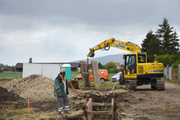 Bevor Wohnhäuser und Straßen gebaut werden können, müssen vorbereitende Kanalbauarbeiten erfolgen, um die Gas- und Wasserleitungen zu verlegen. Das HKL Center Wolkersdorf bei Wien beliefert die Baustelle flexibel und bei Bedarf kurzfristig mit Maschinen aus dem HKL MIETPARK. Für einen Anschluss an die nächstgelegene Kläranlage muss ein etwa zwei Kilometer langer Zuleitungskanal gebaut werden. Dazu fordert die Baufirma einen 15-Tonnen-Raupenbagger von HKL an. Dieser hebt bis zu 3 Meter tiefe Gräben für die Kanalrohre aus. Ausgestattet mit Anschlagketten hilft er zudem beim Ein- und Ausbau der benötigten Verbauelemente zur Sicherung der Baugruben. Nach Einbau der Kanalrohre werden die Gräben mithilfe des Baggers bis auf eine Tiefe von 1,60 Meter wieder aufgefüllt, damit dort Druck- und Wasserleitungen verlegt werden können. Die Maschine von HKL ist genau die richtige Wahl für das Bauvorhaben und überzeugt den Kunden vor allem durch ihre hohe Produktivität und enorme Vielseitigkeit in der Anwendung.