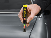 Die Handhabung des Autolack-Tester Pro ist denkbar einfach. Der Magnetkopf des Autolack-Tester Pro wird auf die zu prüfende Stelle am Fahrzeug aufgesetzt und anschließend langsam vom Lack abgezogen. Der Magnetkopf entwickelt abhängig von der Dicke der Lack- oder Spachtelschicht eine unterschiedlich starke Haftkraft, welche sowohl auf einer farbigen 10-Punkte-Skala als auch in Mikrometer angezeigt wird. Auf einen Blick zeigen die Farbbereiche auf der Mess-Skala den Lackzustand der betroffenen Stelle: Beispielsweise bedeutet „Grün“, dass es sich um den Originallack handelt. „Gelb“ hingegen signalisiert, dass der Original-Lack nachlackiert wurde. „Rot“ bzw. „Schwarz“ zeigen eine dünne bzw. dicke Spachtelschicht an, die ebenfalls nachlackiert wurde. Der Autolack-Tester Pro zeichnet sich durch seine hohe Messgenauigkeit bis 25 Mikrometer in einem weiten Messbereich von 0.0 bis 750 Mikrometer aus. Der kompakte Lacktester in Stiftform arbeitet rein mechanisch und enthält keine elektrischen oder elektronischen Komponenten. Daher ist er jederzeit einsatzbereit.
