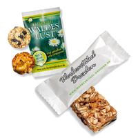 Müsli oder Müsliriegel als Werbeartikel sind nicht nur köstlich sondern punkten auch mit gesunden Inhaltsstoffen. Mit Müsli als Werbegeschenk können Kunden voller Energie in den Tag starten, dem kleinen Durchhänger nach der Mittagspause trotzen oder sich einfach sicher sein, ein kleines Stück gesunder und leckerer Energie in der Tasche zu haben. Wer seine Kunden mit Müsli als Werbegeschenk überrascht, zeigt ihnen so, dass ihm auch an ihrer Gesundheit und ihrem Wohlergehen liegt. Selbstverständlich lassen sich Fruchtschnitten und Müsliriegel in ein individuelles Gewand mit Werbebotschaft verpacken.