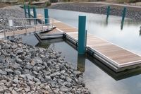 Kiebitzberg® Steganlagen: Eine Kanuschleuse verbindet den Markkleeberger See und den Störmthaler See ab Frühjahr 2013. Auf beiden Seiten haben die Steganlagenbauer von Kiebitzberg® bei Havelberg jetzt eine je 48 m lange Steganlage montiert, auf die man über Zugangsbrücken gelangt.