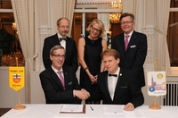 Bonn – Der Rotary Club Bonn hat am Freitag (23.11.2012) mit dem Rotary Partnerclub Straßburg einen Vertrag zur Schaffung eines neuen deutsch-französischen Kunstpreises unterzeichnet. Der mit 5.000 Euro dotierte Preis wird ab 2013 jährlich vergeben, inklusive einer Ausstellung ausgewählter Kunstwerke des Preisträgers. Es können sich deutsche und französische Nachwuchskünstler bewerben. Der Vertrag wurde vom Präsidenten des Rotary Club Bonn, Reinhard Schmidt-Rost, Professor für Praktische Theologie an der Universität Bonn, und dem kommenden Präsidenten des Rotary Club Straßburg, Jean Paul Weber, in Bonn feierlich unterzeichnet.