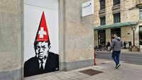 DER FRANZÖSISCHE STRASSENKÜNSTLER GOIN KRITISIERT DAS BANKENSYSTEM MIT EINEM MONUMENTALEN WANDGEMÄLDE AUF DEM GEBÄUDE DER CREDIT SUISSE IN GENF